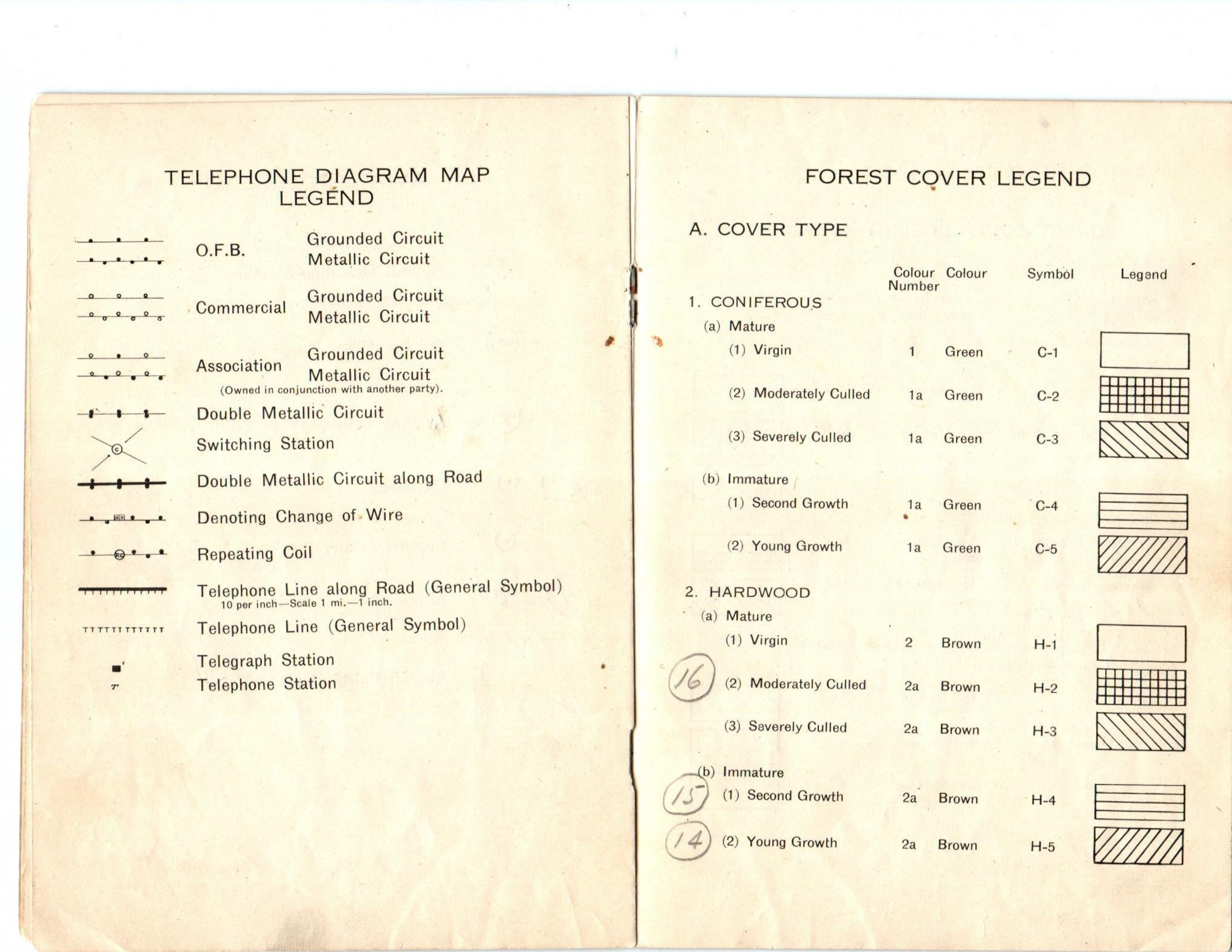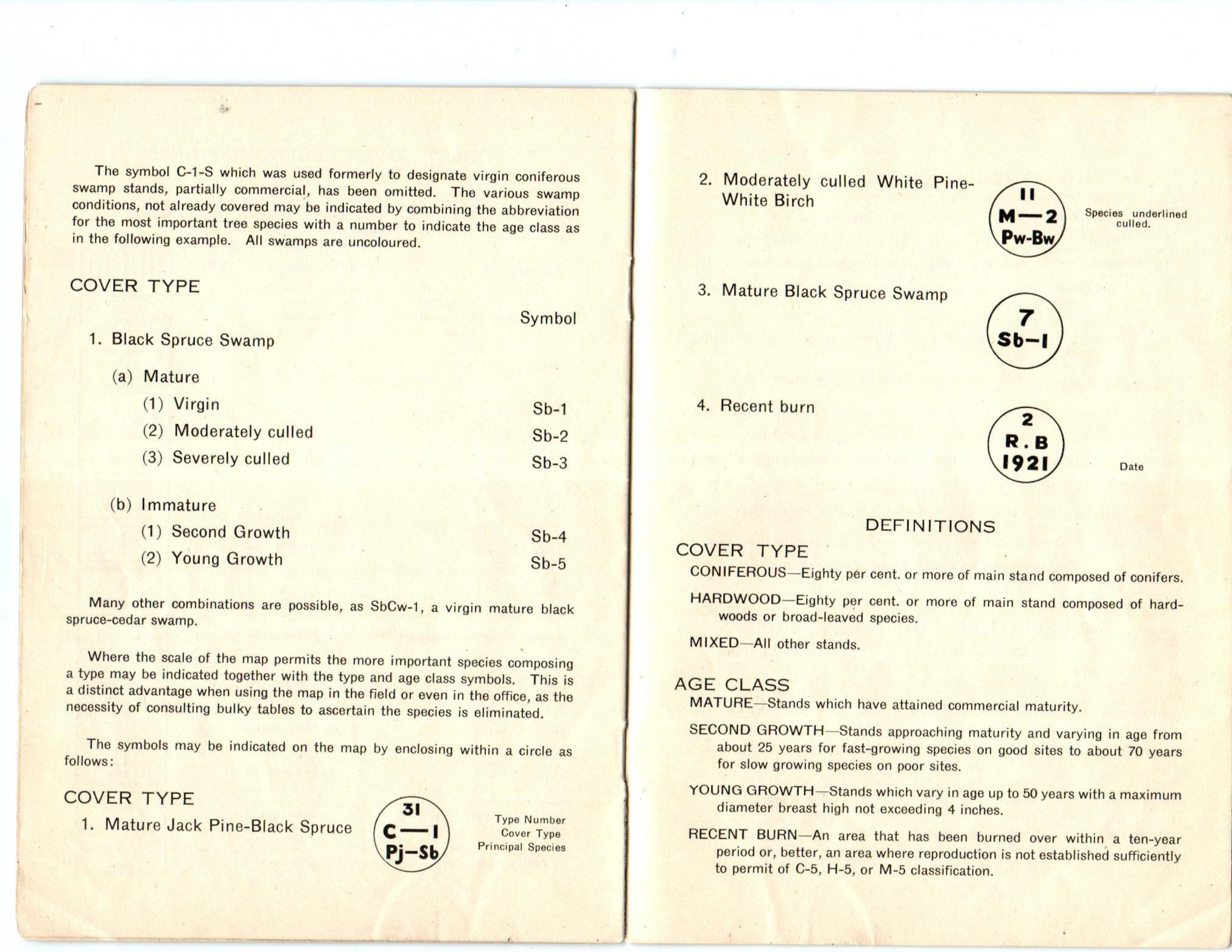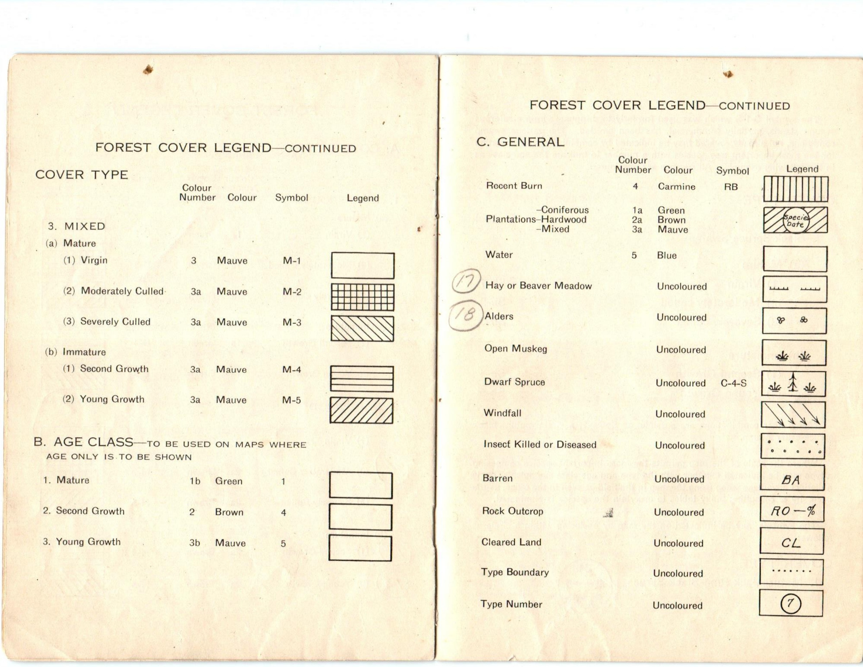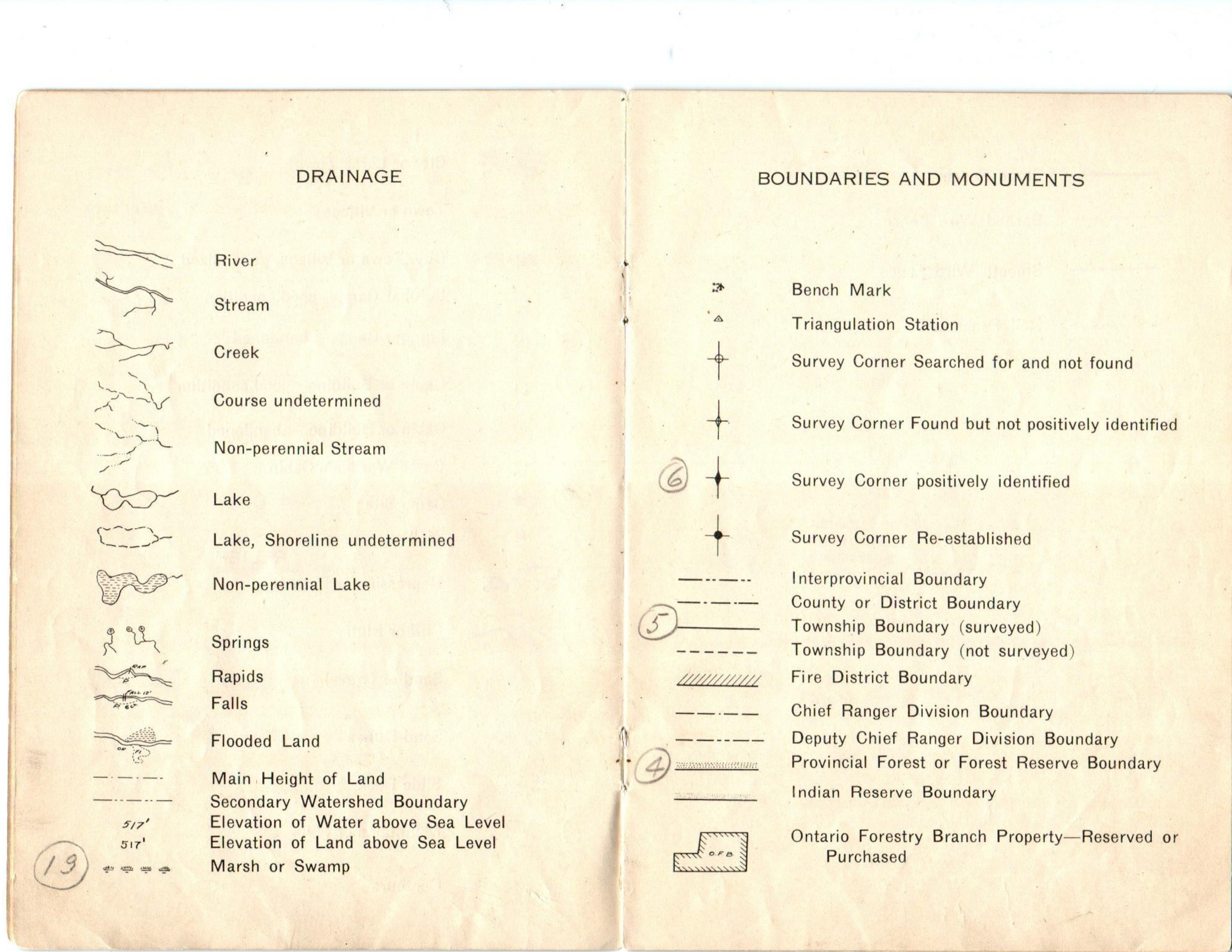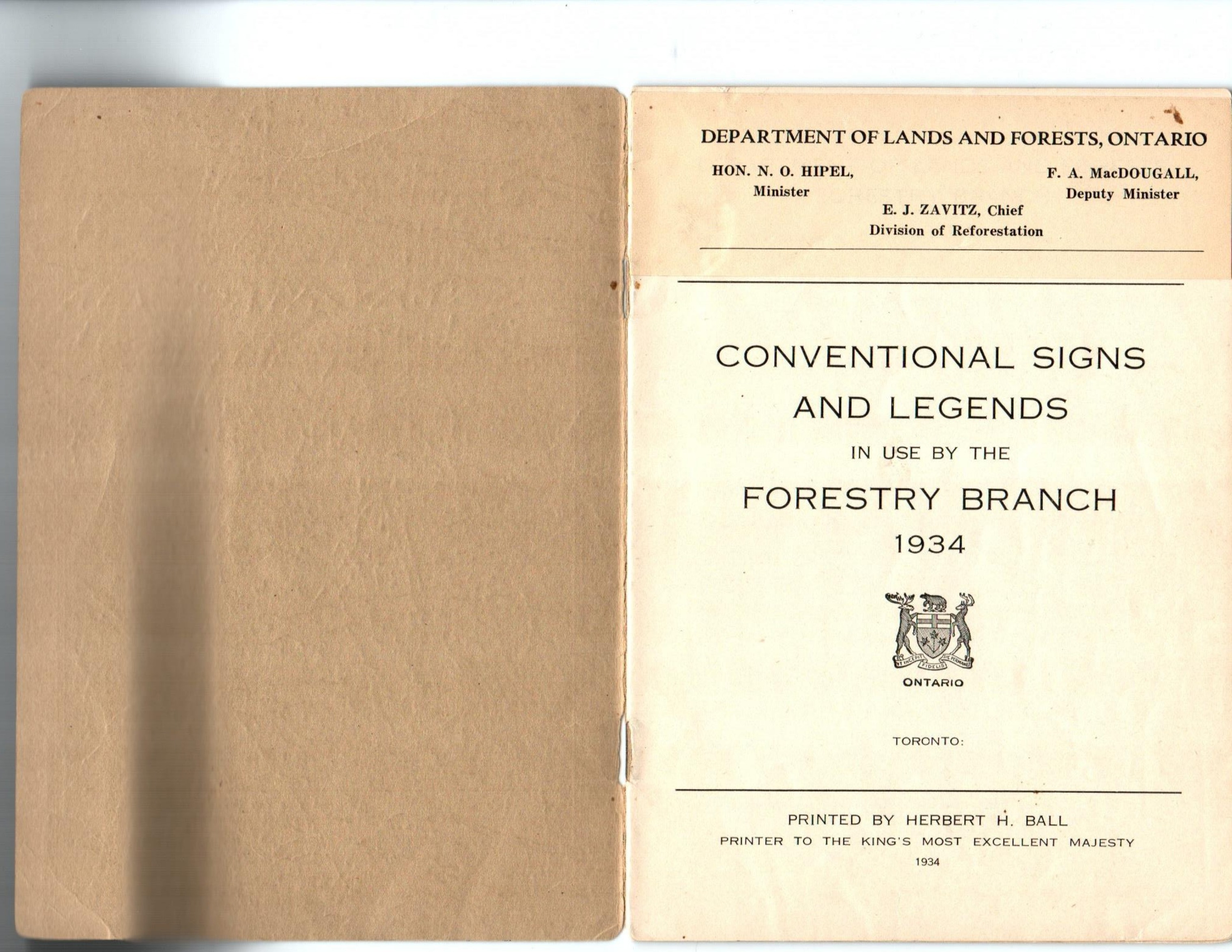 Shortly after our February 12, 2026 Annual Meeting I was contacted by long-time member and supporter, Herb Bax, about a historic Lands and Forests document that has been in his library for a while and offered to contribute it to FHO. It is quite short (PDF link) and quite cryptic. It is titled Conventional Signs and Legends and dated 1934. I am speculating, but it appears to be a guide for L&F cartographers who were in the early days of map making to ensure they all used the same legends on their maps. Aerial photography in Ontario took root in the early 1920s or so and presumably maps in 1934 were much more accurate and somewhat easier to produce than relying on large scale field crews or aerial sketching (which likely had a variety of symbols and keys to identify land features natural and manmade). It is also interesting to note on the inside cover F. A. MacDougall is identified as the Deputy Minister (who is named after our forest history Fund) and Edmund Zavitz is named as Chief, Division of Reforestation. Further, this information is on a small 'label' stapled over the original printing of Minister and Deputy when the guide was originally published...presumably the Minister changed and this was a way of updating the document. The original titles under the label features W. Finlayson as Minister and Edmund Zavitz as Deputy Minister of Forestry. Finally, the front cover features 'Forestry Branch' under the Lands and Forests title (may be hard to see in the scanned copy), but efforts were made to redact that title. I understand that for some time Forestry Branch was a title used commonly but maybe there was a push on to get staff to call it Lands and Forests? Fascinating. Admittedly, this may be a bit eclectic for some...maybe many...but an interesting glimpse of history and early forestry map making that, I suspect, predated Forest Resource Inventory (FRI).